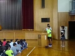 次に生活委員会から廊下歩行のよくできた学級が発表されました。