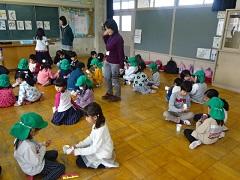 今日の午前中に福田保育所の年長さんたちが二ツ塚小学校に交流に来ました。