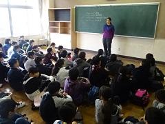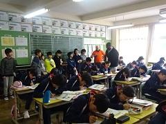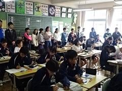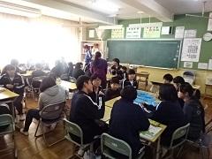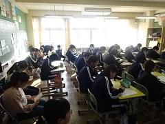 はじめに説明を聞き、グループに分かれた後、中学校の授業を見学しました。