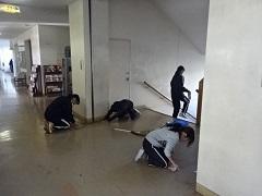 自分で考えて行動する35分間、清掃と読書に無言で取り組みました。