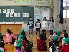 今日の午前中に福田保育所の年長さんたちが二ツ塚小学校に交流に来ました。
