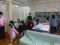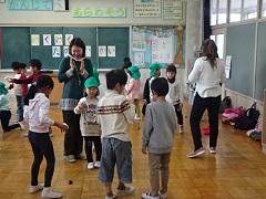 学校探検、学校クイズ、松ぼっくりけん玉、貨物列車などの催し物を準備し、保育園の子供たちを迎えました。