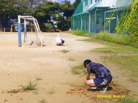 昨日、今日と2年生が学級ごとに生活科の学習を校内の砂場で行いました。