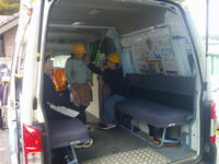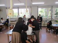 おもに、心臓マッサージの仕方について、模型を使用しながら行い、