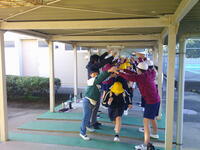 「大縄とび」は、みんなで協力しながら、とばなければなりません。