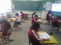 今日は、朝の時間を利用して、全校一斉に「学校生活アンケート」を