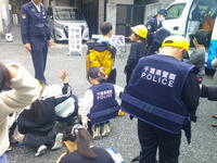 次に、グループに分かれて、「踏切の正しい渡り方」や「線路内に物が落ちてしまったら