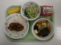 ・麦ごはん ・牛乳 ・お豆のハヤシソース