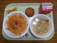 ・キャベツとコーンのクリームスパゲティ ・牛乳 ・海草サラダ