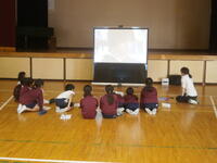 中学校に入学するとどのような活動をするのか。まずは、体育館で一斉に映像を