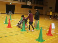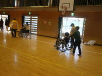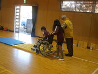 また、体育館に模擬道路を設置し、実際に車椅子に乗ってみたり、動かしてみたりして、