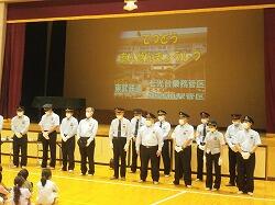 本日、東武鉄道の七光台駅長さんをはじめ、車掌さんや運転手さんなど十数名の皆様がお越しになり、1年生に鉄道安全教室を行ってくださいました。手作りの踏切や電車の模型を使い、丁寧にわかりやすく教えてくださいました。本物の非常停止ボタンなどにも触らせてもらい、1年生は大喜びで、楽しく学ぶことができました。