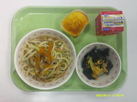 今日は、「冷やしきつねうどん」です。油あげが入っている