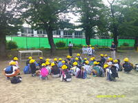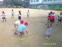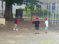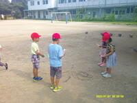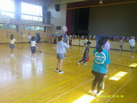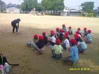 行いました。1時間目とはいえ、帽子をかぶり、水筒持参で校庭に集合。短時間で行いました。