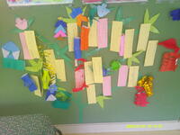 学級によっては、飾りを作ったり、短冊に願い事を書いたりして、掲示