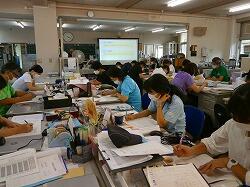 後半は、教職員にとってより負担感のある仕事は何か、どのようにすれば負担感を少しでも軽減することができるか、共通する課題毎にグループを作って話し合いをしました。