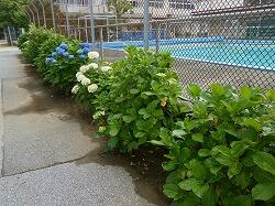 6月。紫陽花の花が子ども達を迎えてくれています。