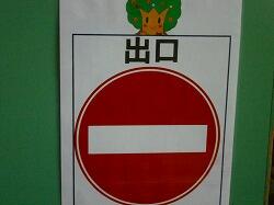 学校は、密にならないように対策を考えていますが、その一つとして、教室の出入り口を一通とし、ドアには下のような表示をしています。