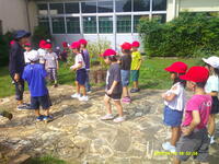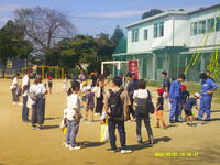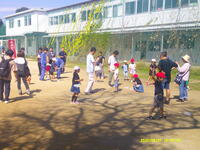 授業だったこともあり、1年生児童は少し緊張しながらも、校庭では張り切って