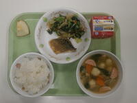 ・小松菜と油揚げのごま炒め  ・みそけんちん汁  ・りんご