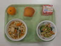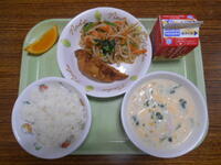 ・ひじきと枝豆のサラダ ・米粉のコーンポタージュ ・ゆめオレンジ