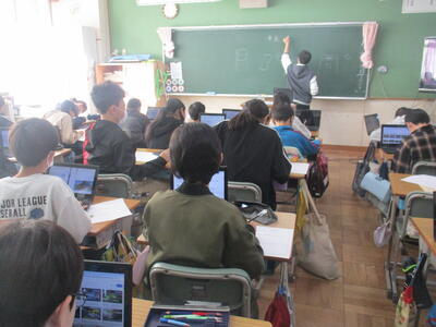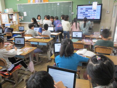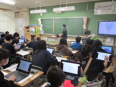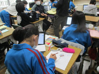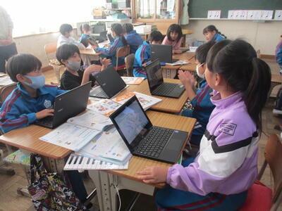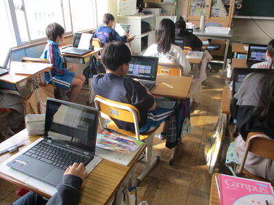 6年生 学活 「卒業文集」の原稿を綴っています。(クロームブック)