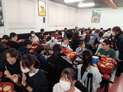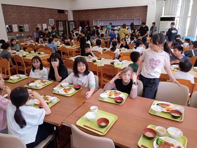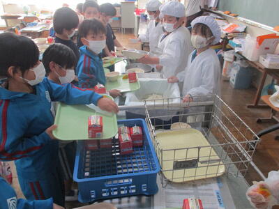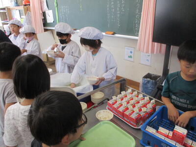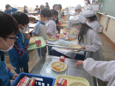 1年生 配膳中! 今日のランチは何かな?