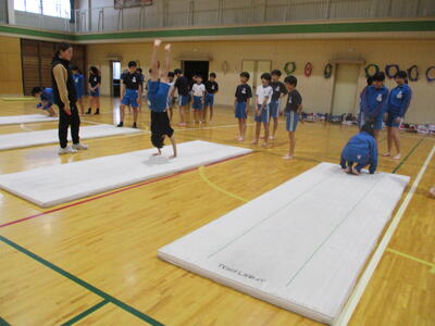 4年生 体育 「マット運動」 さぁ、やってみよう!