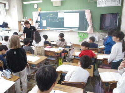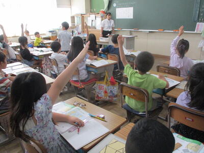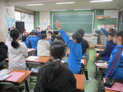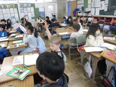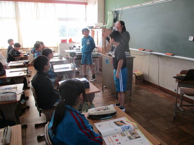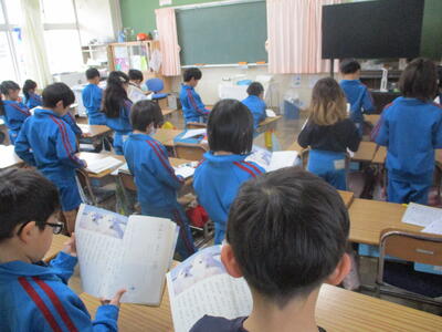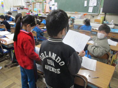 5年生 外国語 ペアで会話ね。