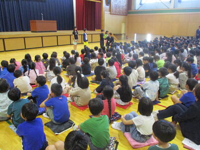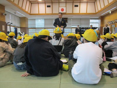 警察署では、天候があまりよくなかったので、武道場で話を聞きました。