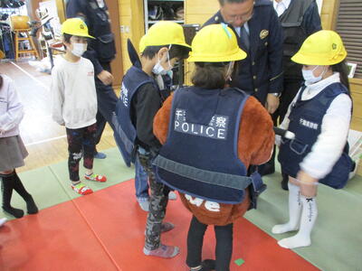 手錠や警棒、ベストなんかも実際に触らせてもらいました。
