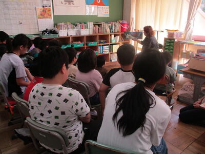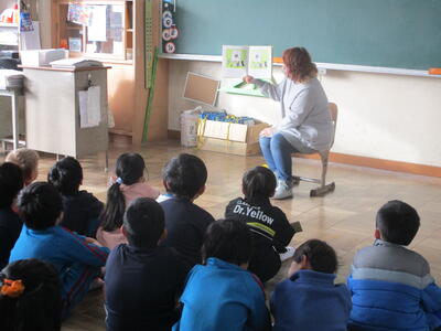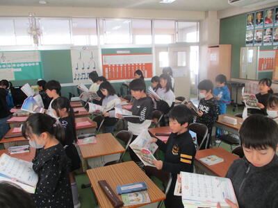 2年生 「朝の読み聞かせ」 ベルが鳴ったら、異世界へ。
