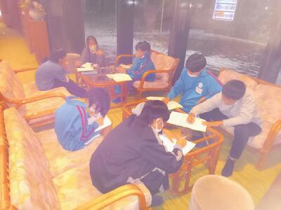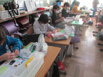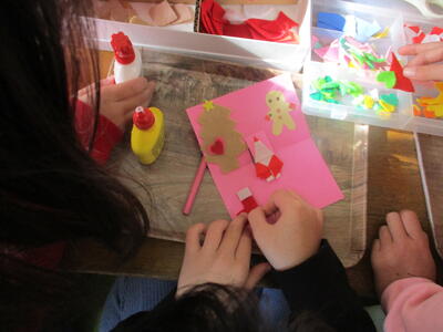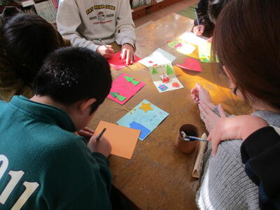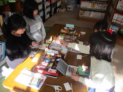 「本のはらっぱ」 クリスマスカードづくり(業間の休み時間)