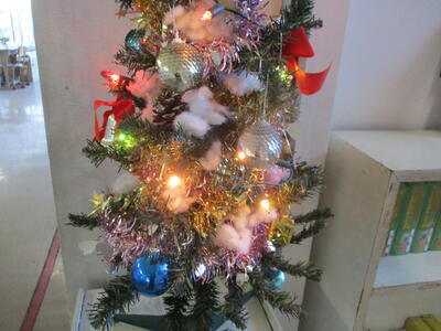 お! 5年生 廊下にクリスマスツリーが登場したぞ!