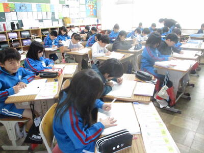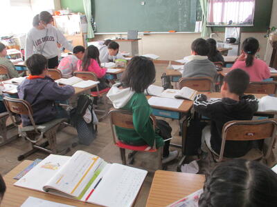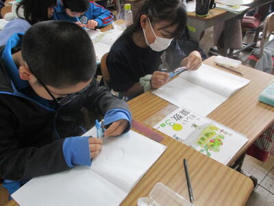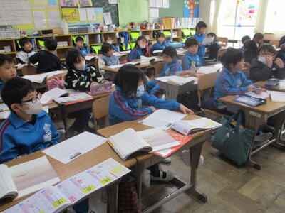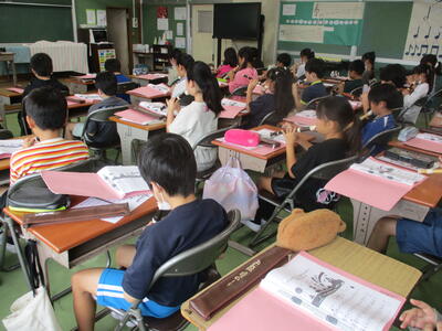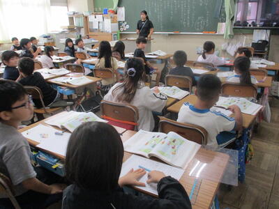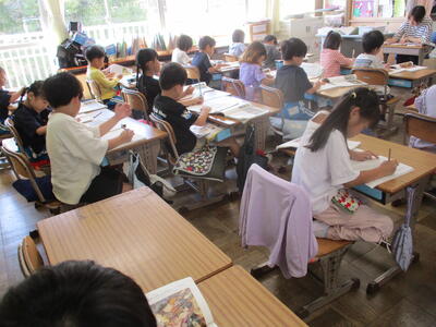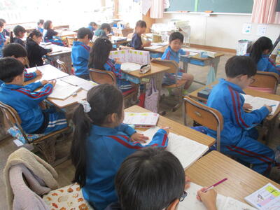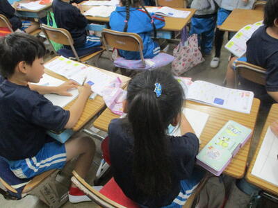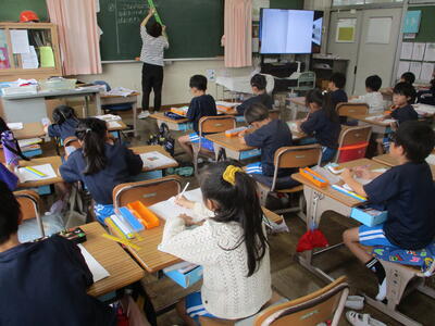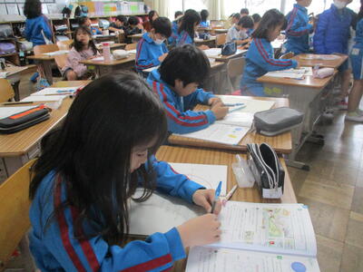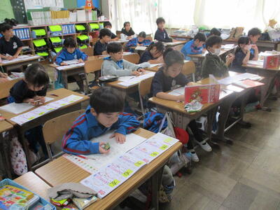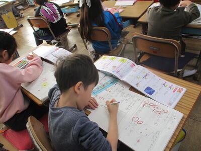 1年生 こくご お! 集中しているなぁ! 漢字の学習中