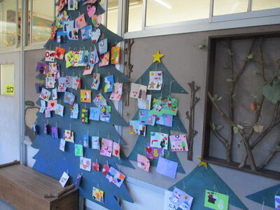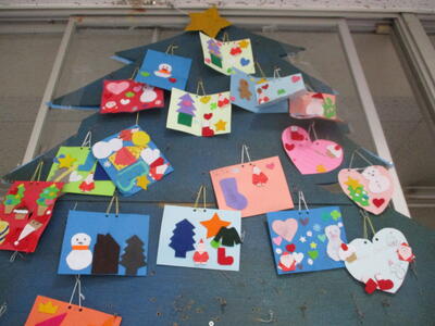 「本のはらっぱ」クリスマスカードのツリー きれいにできてきたね!