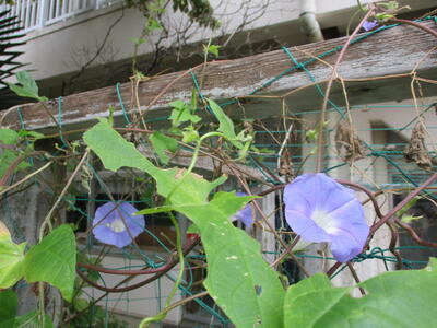 「本のはらっぱ」前のアサガオです。