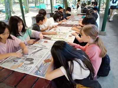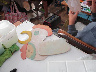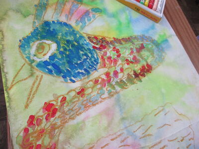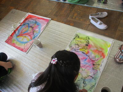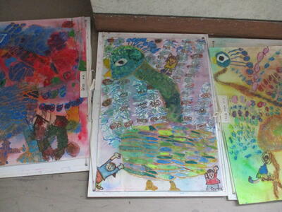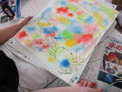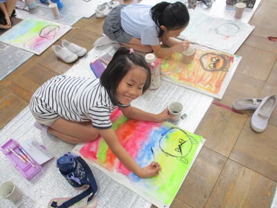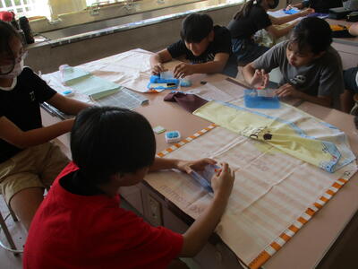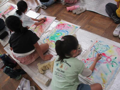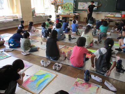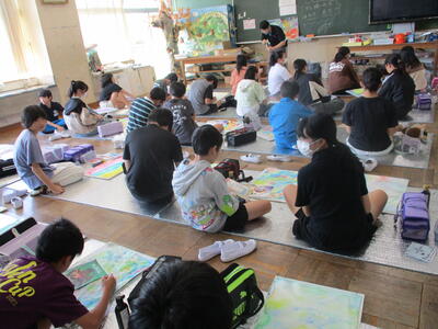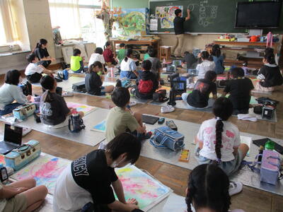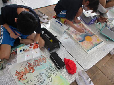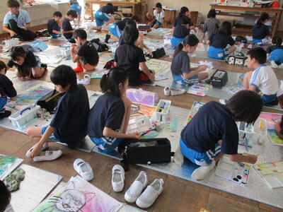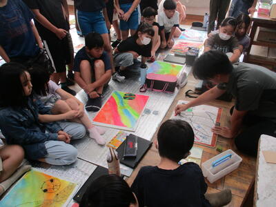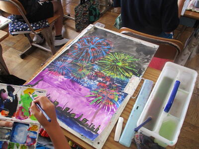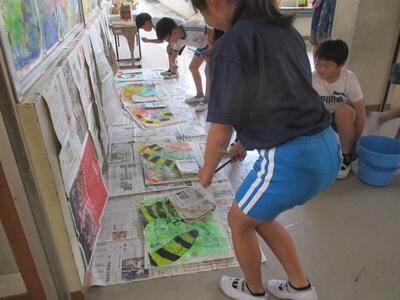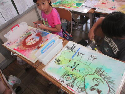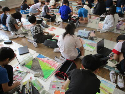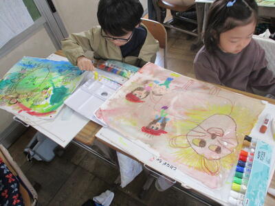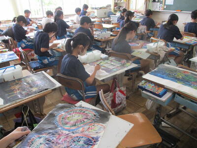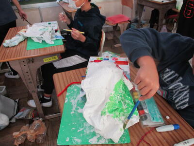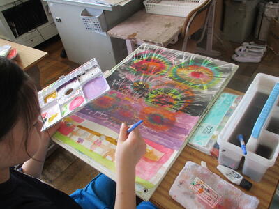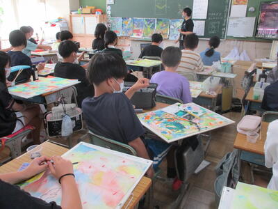 6年生 図工 皆さんは彩色した紙に何を載せていくのですか?