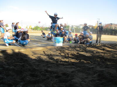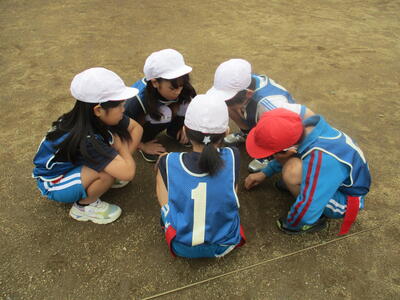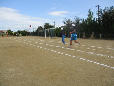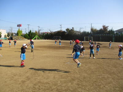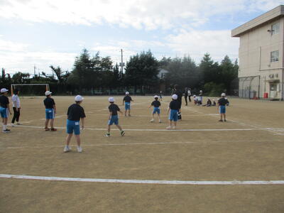 4年生 体育 涼しいねぇ、今日の校庭は。