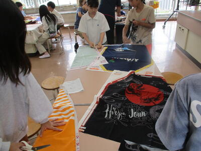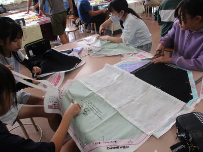 5年生 家庭科 「エプロン」づくり ミシンがんばってね!