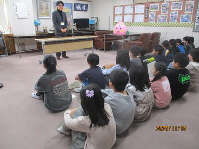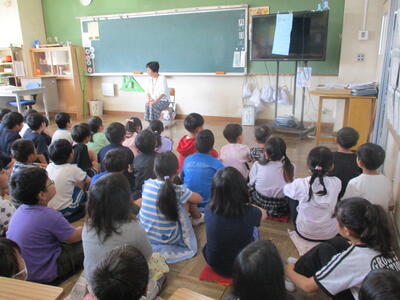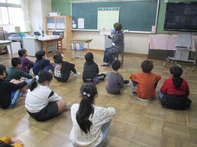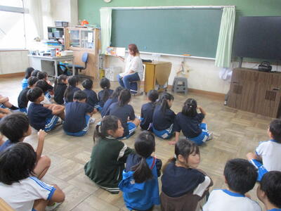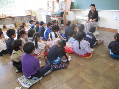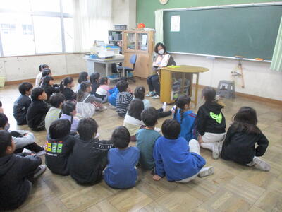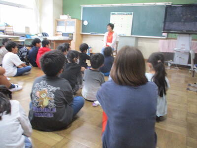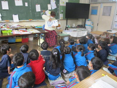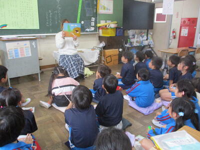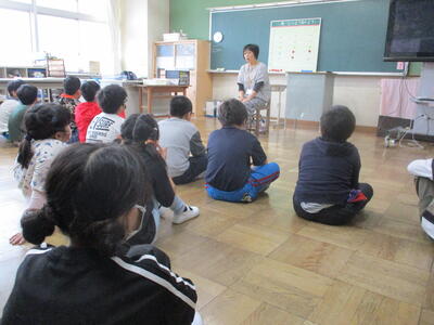 1年生 「朝の読み聞かせ」 秋のお花のおはなしをしてくださいました。