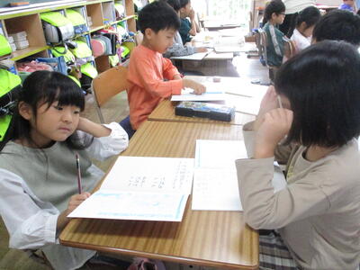 2年生 国語 「お話美術館」 今日はお互いに鑑賞するんだね。