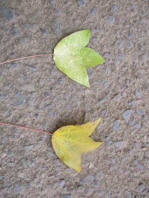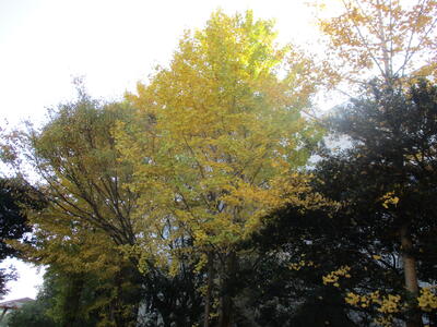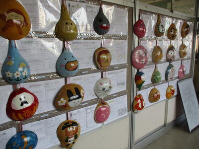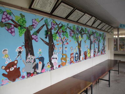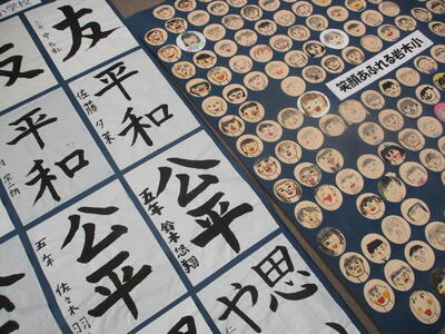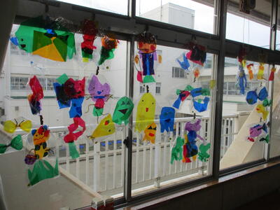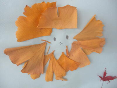 1年生 廊下掲示 イチョウの葉だな。 「ライオン」?