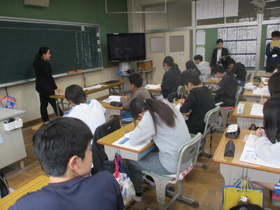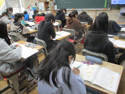 3年生 音楽 リコーダー吹奏中! がんばれ!