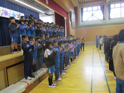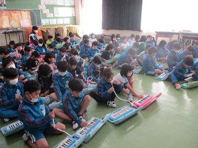 1年生 おんがく 「ひのまる」 ピアニカがんばって!