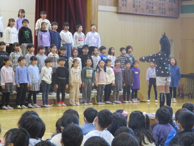 6年生 音楽 「星の世界」 合唱中 夜空がきれいな季節になります。