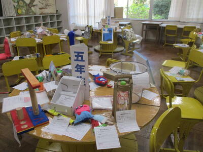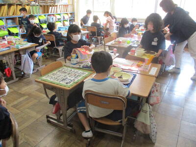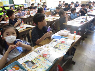 1年生 ずこう お! きみたちも画紙を加工しましたね!