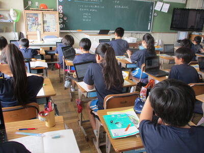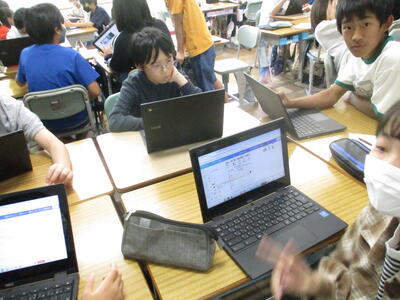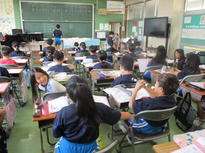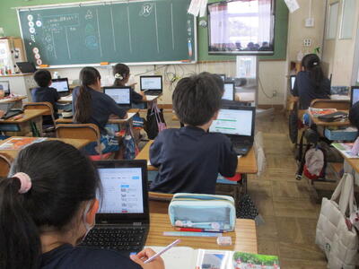 5年生 昨日は「卒業式」がんばったね! クロームブックで学習中!