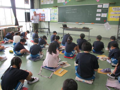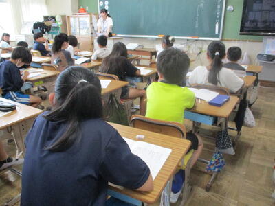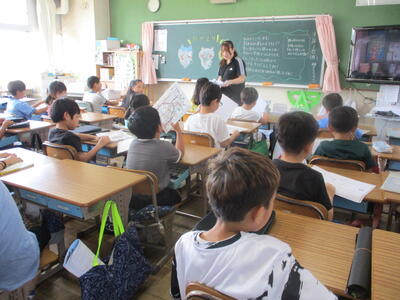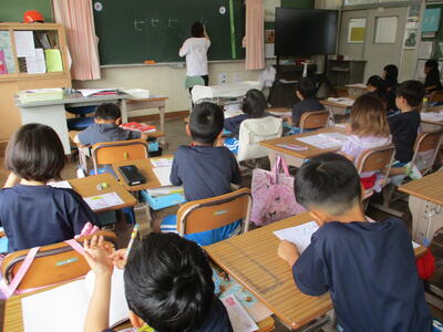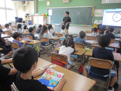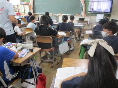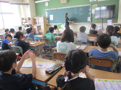 4年生 外国語 ステーショナリーのカードをめくるゲーム