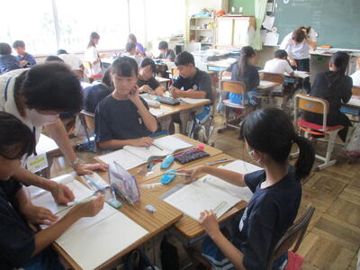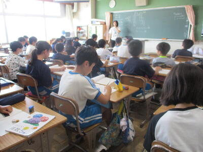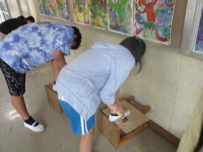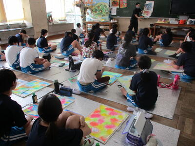 6年生 図工 画紙、染色しましたな! この後、どんな絵を?